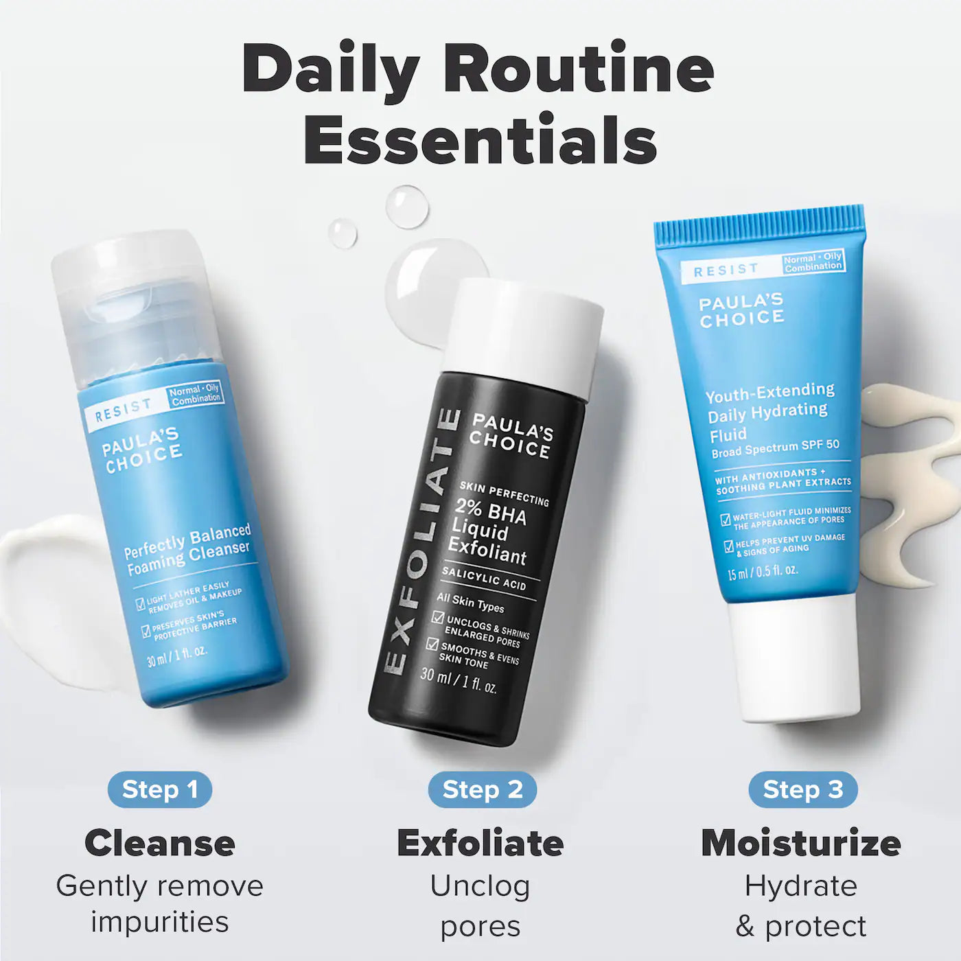 Mini Must-Haves with 2% BHA Exfoliating Toner, Foaming Cleanser, & SPF 50